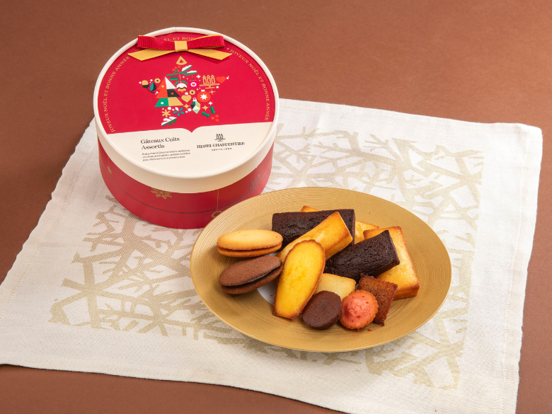 一流洋菓子店「アンリ・シャルパンティエ」からクリスマス時期だけの限定パッケージに、人気の焼き菓子を詰め合わせた、ちょっと欲張りなワンボックス。素材の風味にこだわったひと口サイズの焼き菓子に、フィナンシェとマドレーヌ、さっくり軽いクッキーを詰め合わせました。華やかな赤・ピンク系でデザインされたアレンジメントを眺めながらくつろぎのティータイムをお楽しみいただけます。