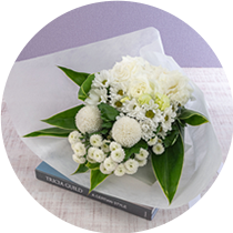 清らかで気品漂う装いに仕上げたメモリアルフラワーです。22,000円(税込)